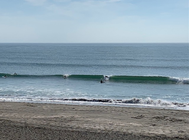 ウネリに力がなく沖の棚ではブレイクせず、インサイド気味のショアブレイクで1~2アクション。