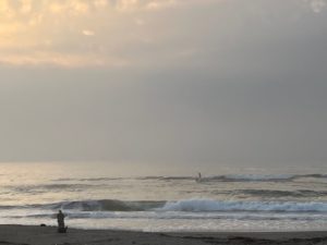 夏休み連休がスタート。暑さも和らぎ波のサイズはコシ~ムネ。午後は南東の風が吹く予報。