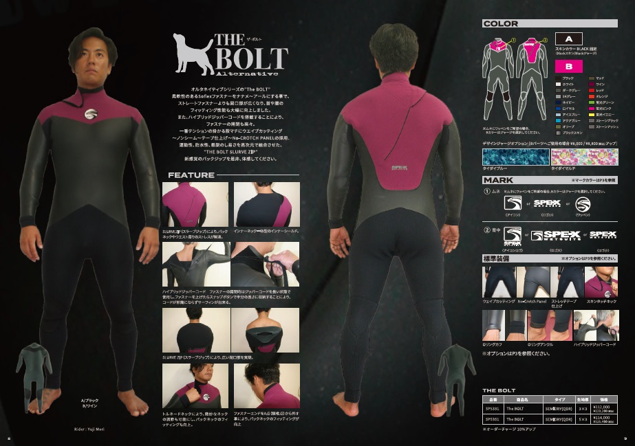 ◆【ザ・ボルト】もフラッグシップTHE JONATHANモデルをベースにした、バックファスナータイプのセミドライスーツになります。11月30日までは更に¥10,000早期割引価格にてオーダーして頂けるキャンペーン対象モデルです。