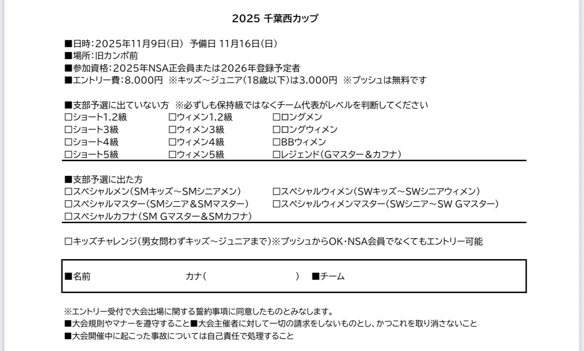 NSA千葉西支部主催【千葉西カップ】エントリー受付中。