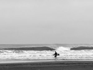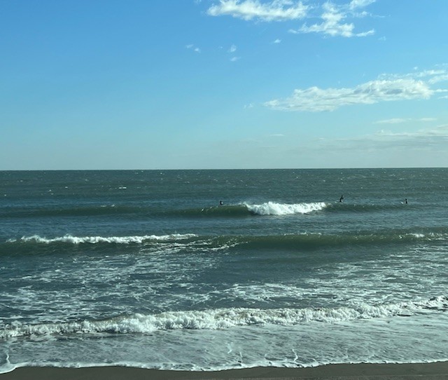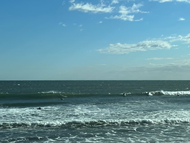 強く吹き付ける風でボードが滑り出しにくく、強いオフショアのスモールウェーブコンデションは狭いテイクオフエリアの見極めが重要になります。ポジションが悪いとスタンドアップのタイミングを逃し無理やり立ってもライディングが続かなくなってしまいます。