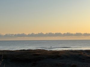 快晴の土曜日になりました。波のサイズはコシ前後とスモールサイズ風はオフショアなので、浮力の多い沢山波をキャッチできるボードを持ち出せば、ストレス無く楽しめそうです。