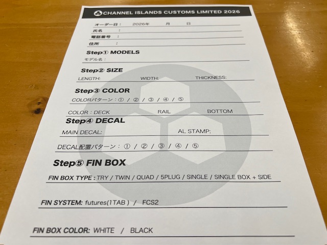 【CI カスタムリミテッド2026】のカスタムボードは専用のオーダー用紙をご用意しています。
