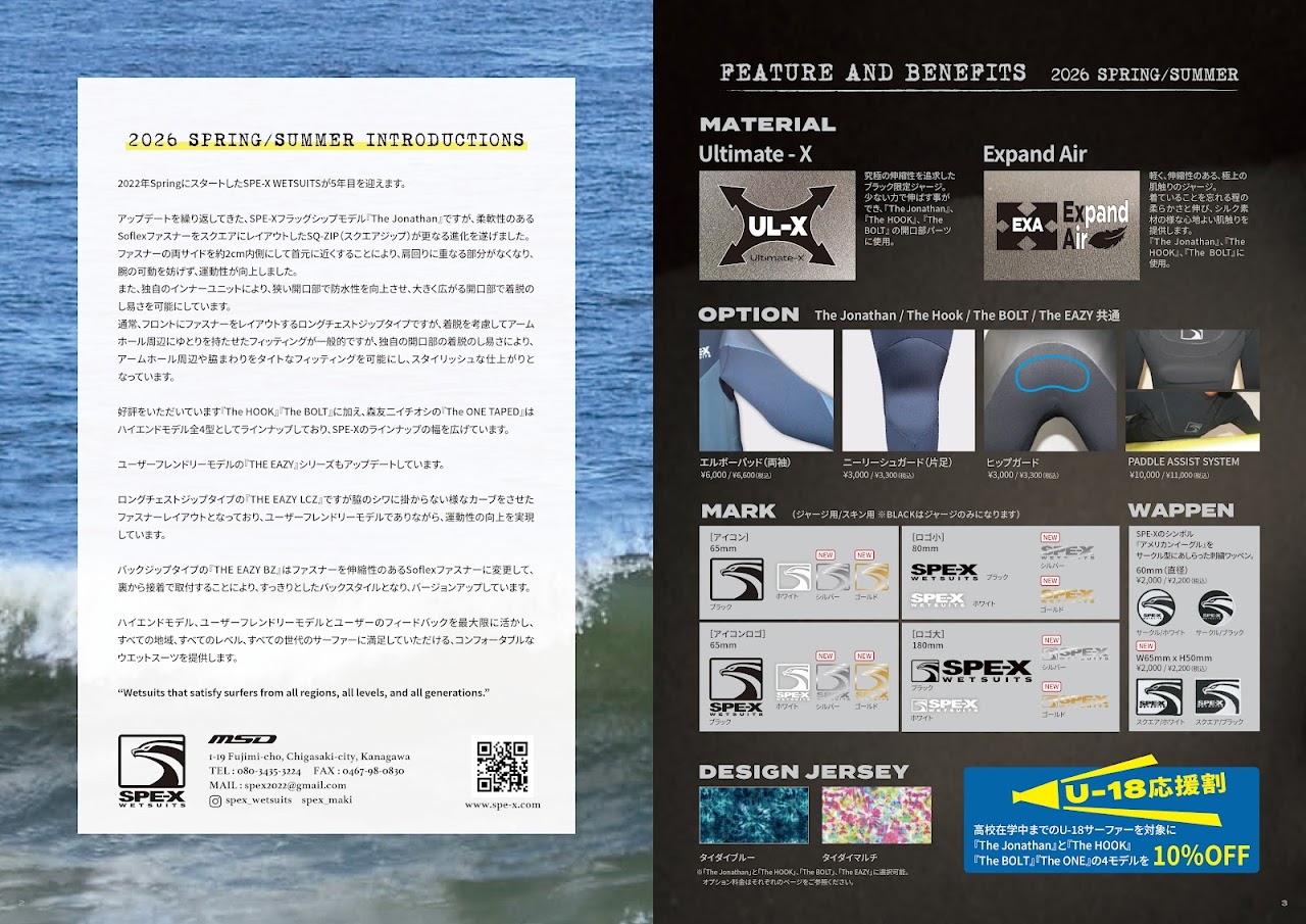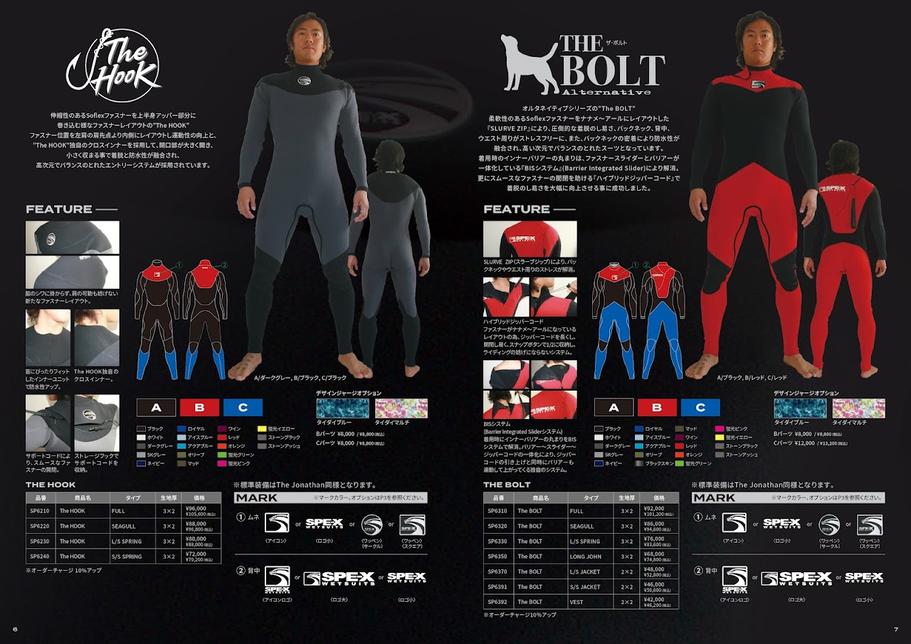 ◆運動着脱性と防水保温性のトータルバランスに優れたフラッグシップモデル【THE JONATHAN】、THE JONATHANとファスナーレイアウトを変え防水性を向上させた【THE HOOK】、ベーシックなバックジップスタイルとオートマチックで開閉する防水パネルを融合させた【THE BOLT】の3モデルと、1㎜コンペティタースーツ【THE ONE】。コストパフォーマンスを重視した【THE EAZY】シリーズ+夏専用アイテム【THE EAZY Limited】の商品構成です。
