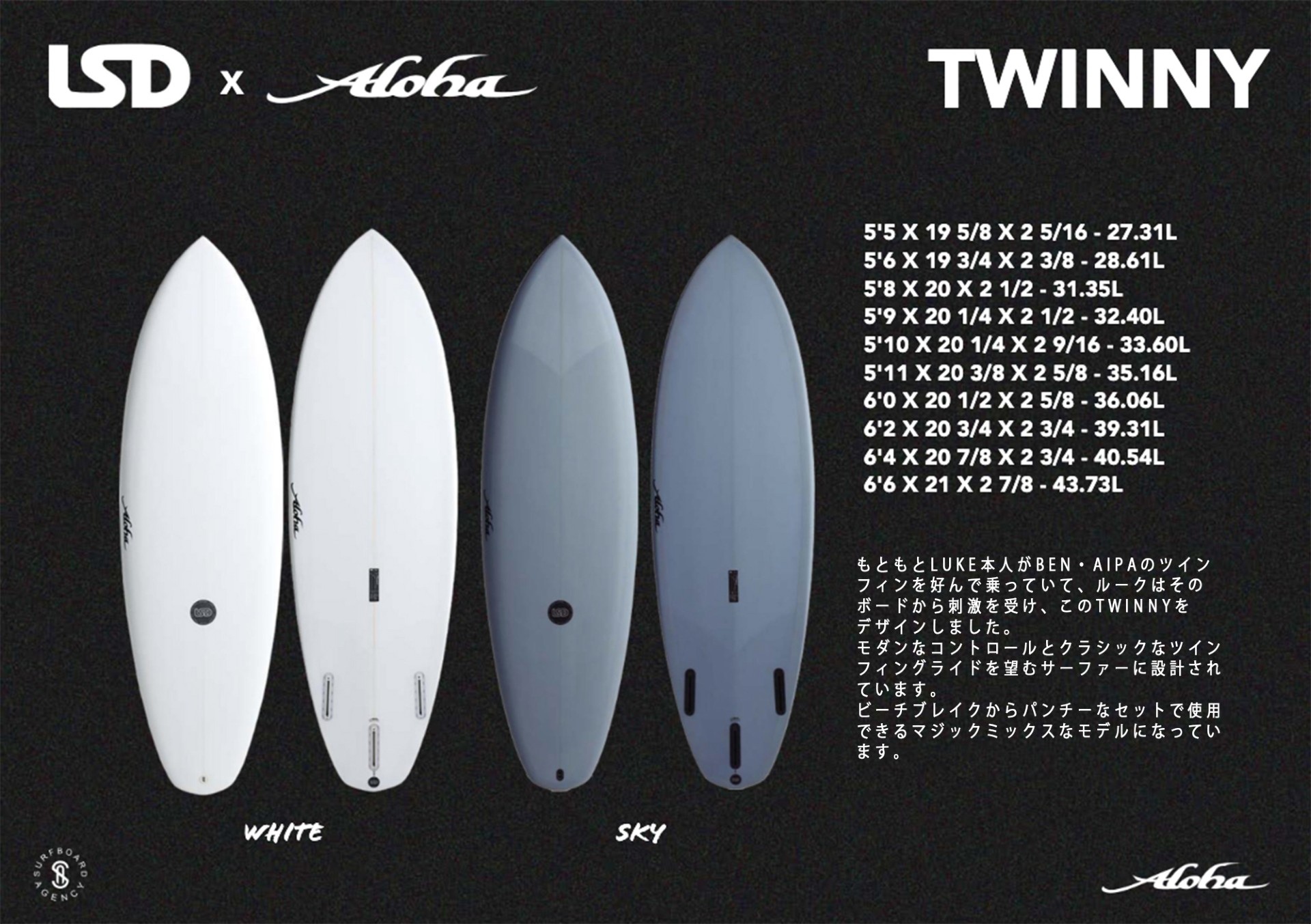 ルークさんも愛用している【TWINNY】はツインスタビライザーで楽しむ人気モデル。今回6’2”ホワイトレジンカラー・6’4”スカイグレーカラーが入荷します。